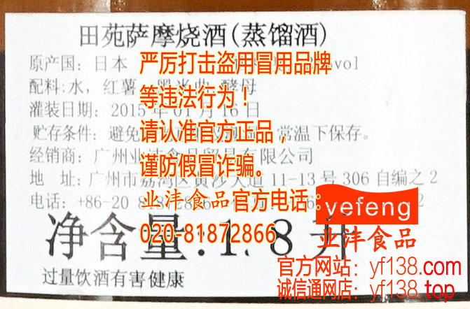 田苑芋烧酎 1.8L★原装进口★