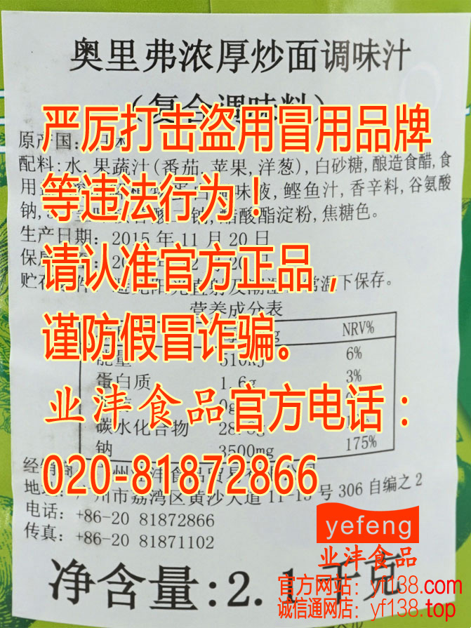 炒面汁(神户)1.8L★原装进口★ 奥里弗浓厚炒面调味汁/神户炒面汁