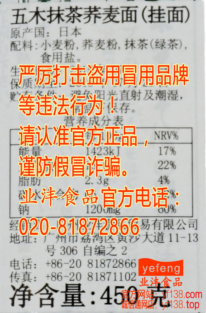 五木茶面(A) 450G★原装进口★五木抹茶荞麦面/挂面