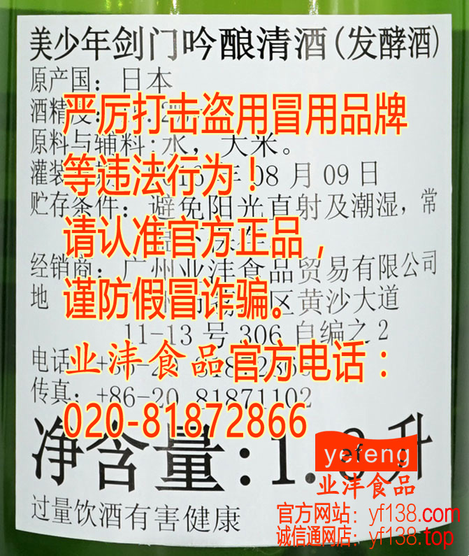 美少年纯米吟酿(復刻版)1.8L★原装进口★